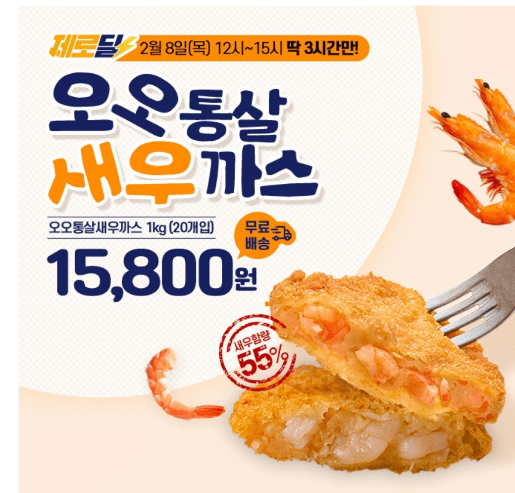 55%새우함량! 오오통살 새우까스 1kg 역대급 할인! 캐시워크 돈버는퀴즈정답 2월8일 목요일