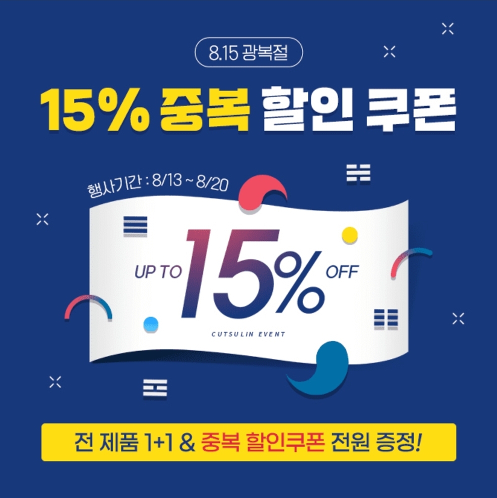 8.15 광복절 15% 중복 할인 쿠폰트 증 정